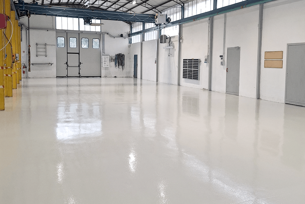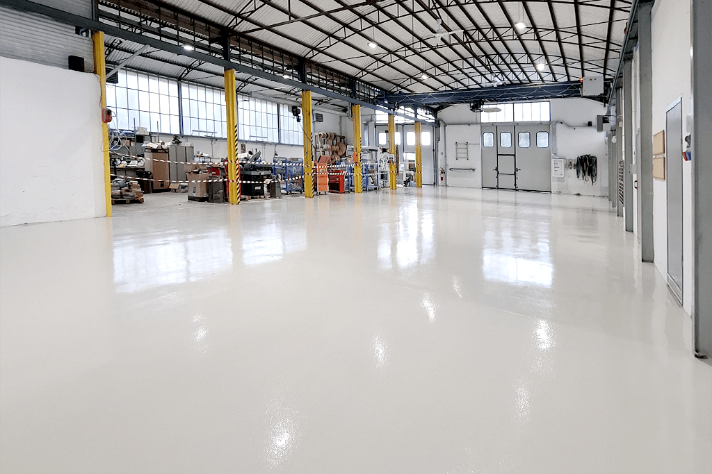 Completato il recupero di spessore e la messa a livello, abbiamo applicato una finitura in resina epossidica, adeguata alle esigenze operative dell’ambiente produttivo.