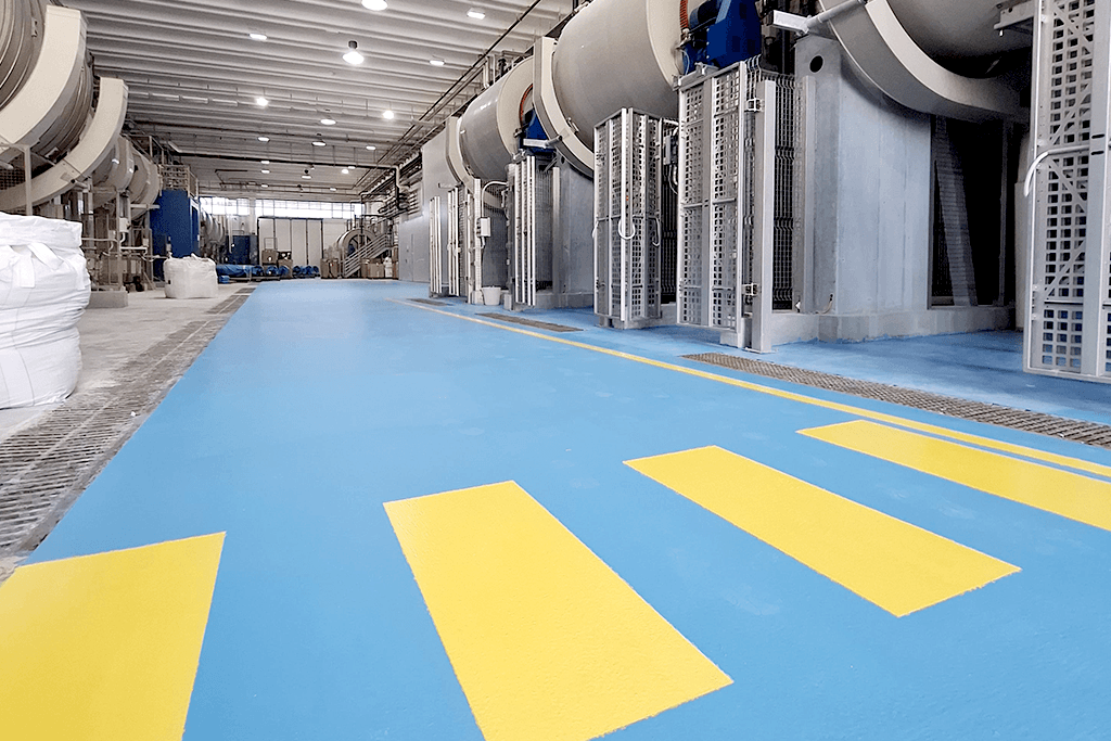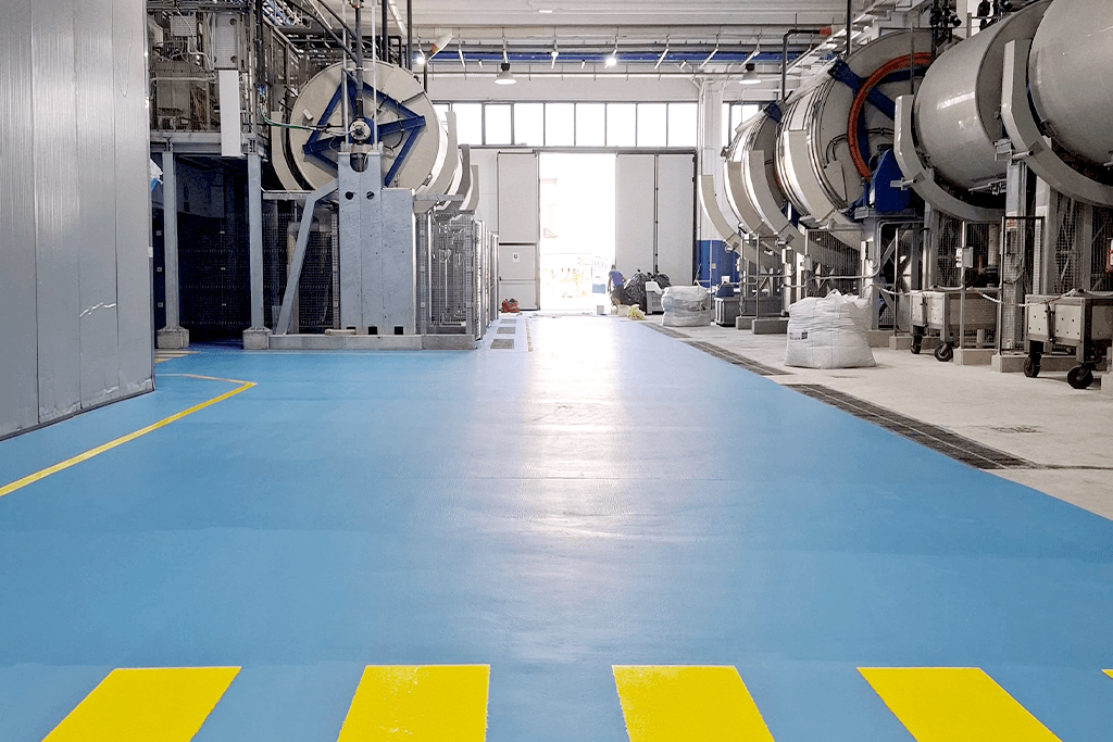 Abbiamo realizzato un nuovo pavimento in poliuretano cemento, scelto per le sue caratteristiche di resistenza in ambienti produttivi particolarmente aggressivi.