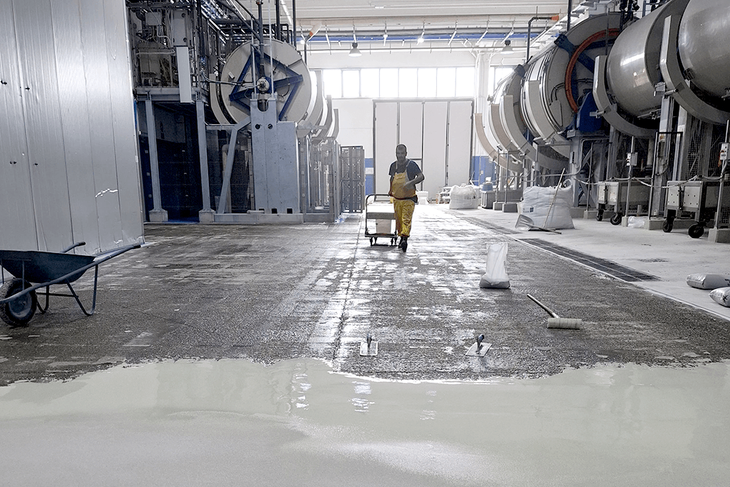 L’azienda aveva già una pavimentazione in resina epossidica, ma le sostanze utilizzate nel processo di concia richiedevano prestazioni superiori: una resina epossidica “standard” non risultava adeguata in presenza di prodotti chimici, anche acidi, e di lavaggi frequenti. Inoltre, la pavimentazione presentava umidità di risalita, condizione che rendeva necessario adottare una soluzione ancora più idonea al contesto.